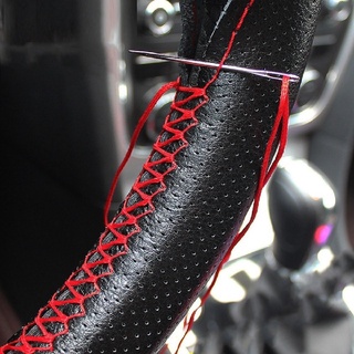 Car Steering Wheel Cover Penutup Roda Stereng Yang Dijahit Tangan Benang Jarum Lilin Benang Lilin Kereta Yang Dijahit Tangan Penutup Benang Jarum Hitam Merah Beras Kelabu Merah Coklat Biru Oren Shopee